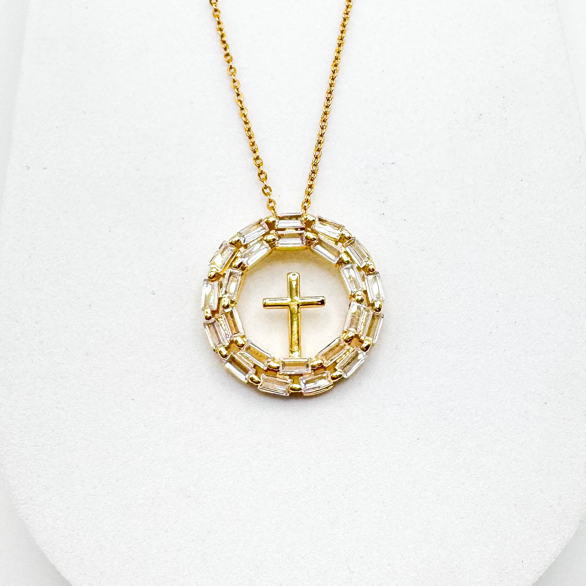 NECKLACE CIRCLE WITH CROSS | 18k gold plated